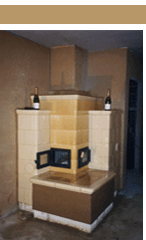ungehindert in die Atmosphäre abgeben. Im Kachelofen hingegen